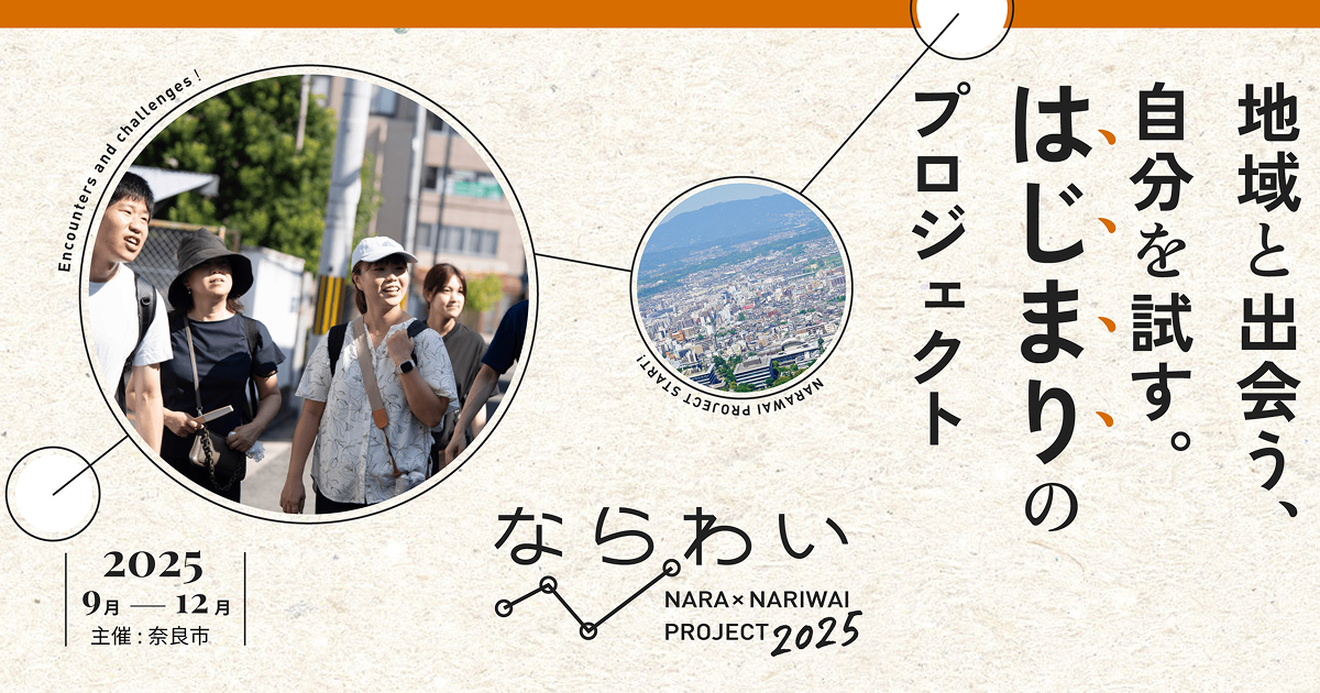「ならわい」は、奈良市が主催し、奈良県外在住者を対象にした 移住×起業プロジェクトです。全国から参加者を募り、地元企業と連携して新規事業の立ち上げに挑戦します。